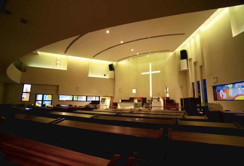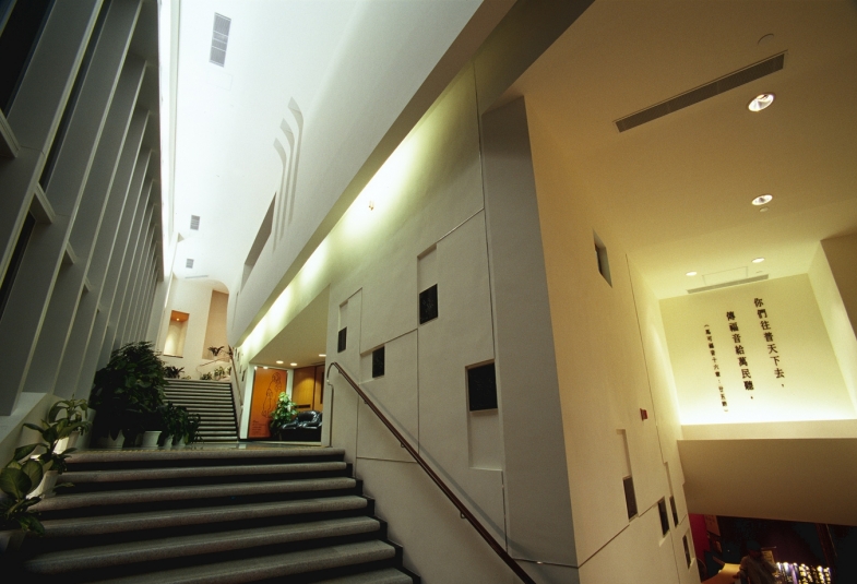 The Design Concept is to introduce unpredictable Nature into the religious space and touches the hearts of the congregation. Therefor the focus of the Church Hall was a cutout Crucifix which emits sunlight collected from the chamber behind and the skylight above. To connect all podium floors, the Grand Staircase provides a solemn yet tranquil space and a distinctive religious experience sculpted by light.