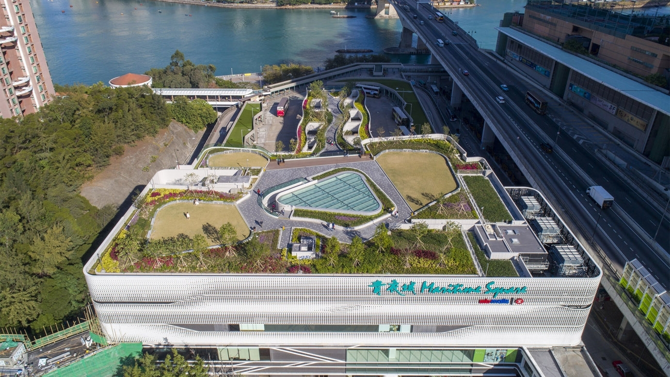 This new landmark also serves as pedestrian transport hub which connects the surrounding residential estates, MTR and public transport interchange with bridges and a 24-hour walkway through the arcade.