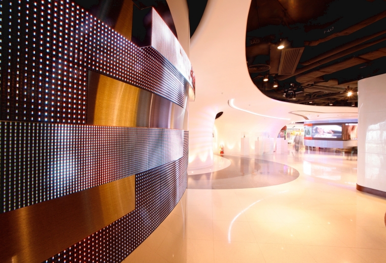 電影的預告片是有助捕捉或引起觀眾的好奇心。通過大堂內的兩部360度超過3米長的液晶體電視,將數碼應用推向更富趣味及有意思的層次。