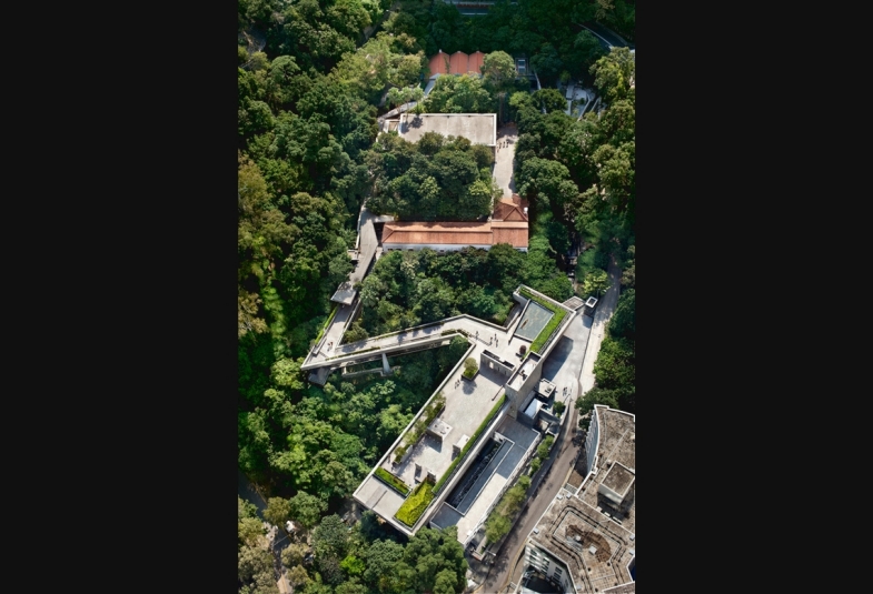 在此雨林中,有一條精心設計之"Z"形橋,連繫亞洲協會香港中心各建築物。