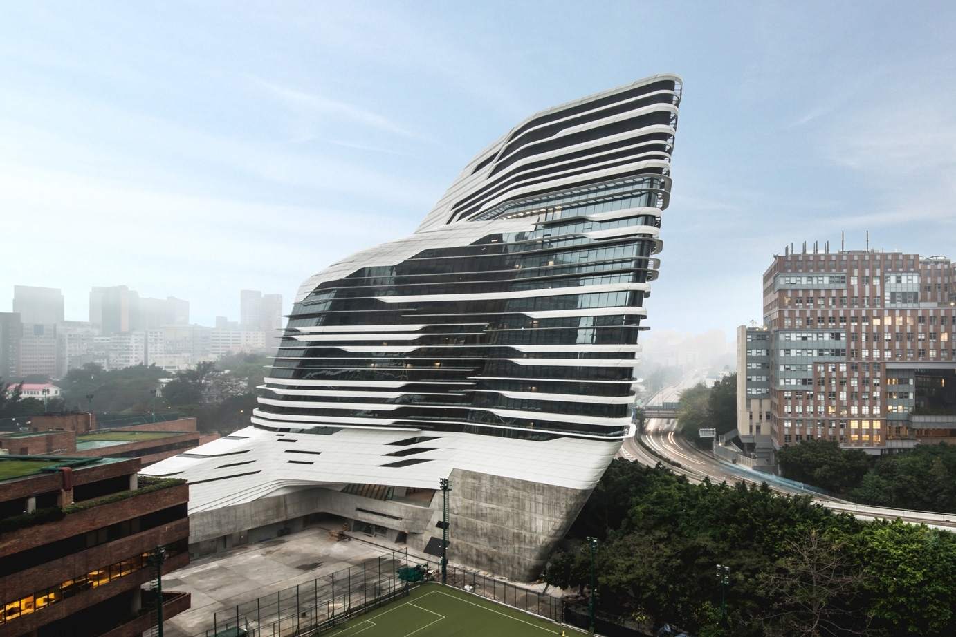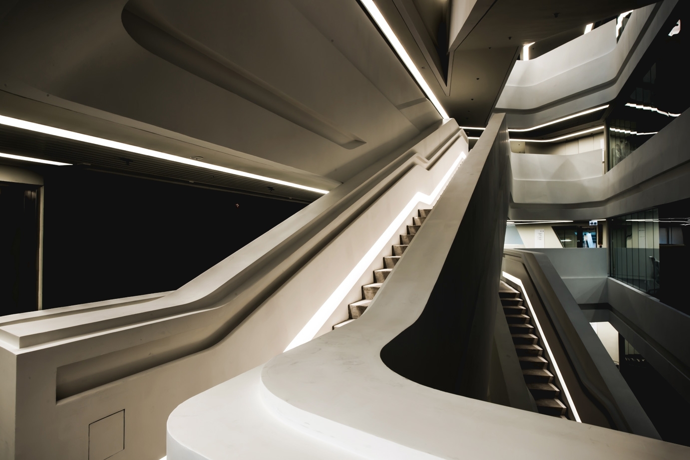 創新樓是一個與 Zaha Hadid Architects 合作的項目。設計概念源於流動的空間,樓內各種各樣的工作空間被設計成為一系列多樣化的陳列櫃,如瀑布般從中庭由上而下傾瀉。